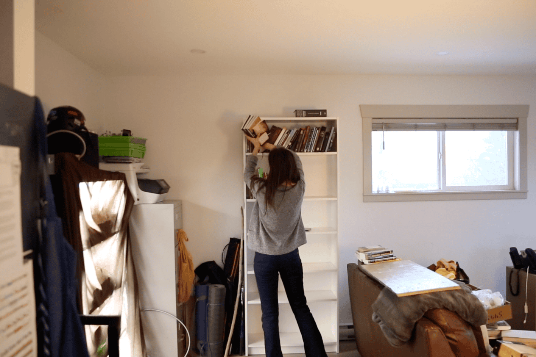 Next, move little pieces (lamps, books, decor) to one corner of the room and clear off desks, side tables and book shelves. Don’t get discouraged by the mess, just keep moving along. The goal is to revamp the layout of the space, and for this you need to get to the foundation of your things: the furniture.
